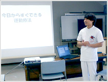 最初に糖尿病の運動療法についての説明があり、実際にスタッフと一緒に1人でも簡単にできストレッチや運動をやりました。ゲーム感覚でできる運動もあり、皆さん楽しみながら参加されていました。