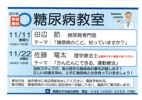 地域・社会貢献地域公開講座 2016年11月22日(火)朝霞台中央総合病院