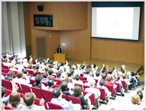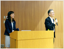 現在の糖尿病の治療・予防の現状、たまごとあぶらを中心とした食べ物とコレステロールの関係、食事における減塩の工夫等、スライドを用いながら解説しました。講師のお二人による息の合った掛け合いは好評で、「とても楽しく聞くことができた」との声を数多くいただきました。