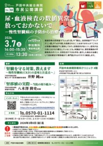 | 講座名 | 尿・血液検査の数値異常、放っておかないで ー慢性腎臓病の予防から治療までー |