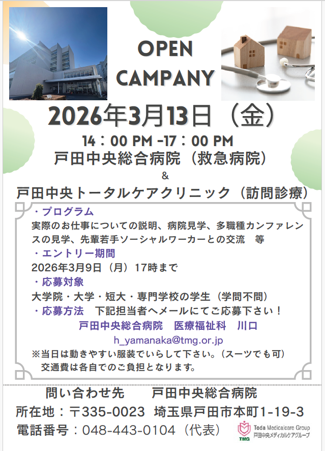戸田中央メディカルケアグループ、TMG本部人事部の松島と申します(・ω・)ノ